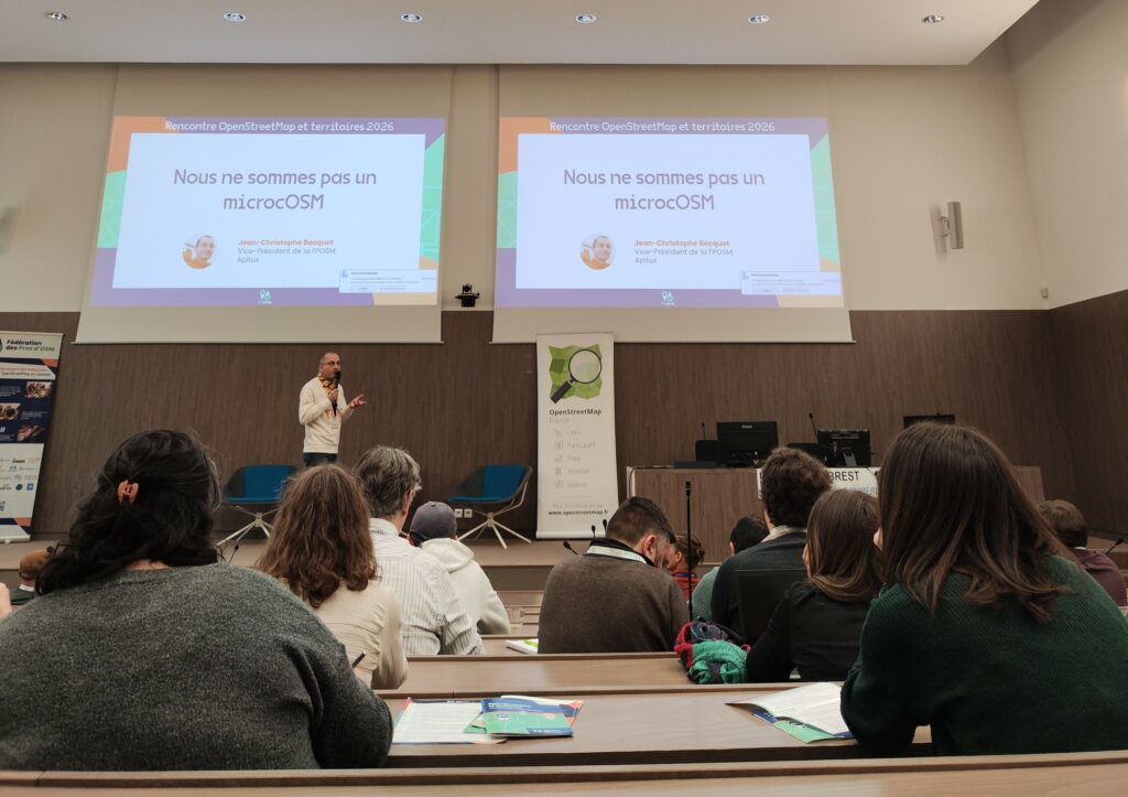 Le 24 mars 2026 s’est tenue à Brest la Rencontre OSM et Territoires, dans la continuité des Rencontres des utilisateurs de QGIS. Cet évènement a mis en avant les usages et possibles autour d’OpenStreetMap au service des collectivités territoriales.